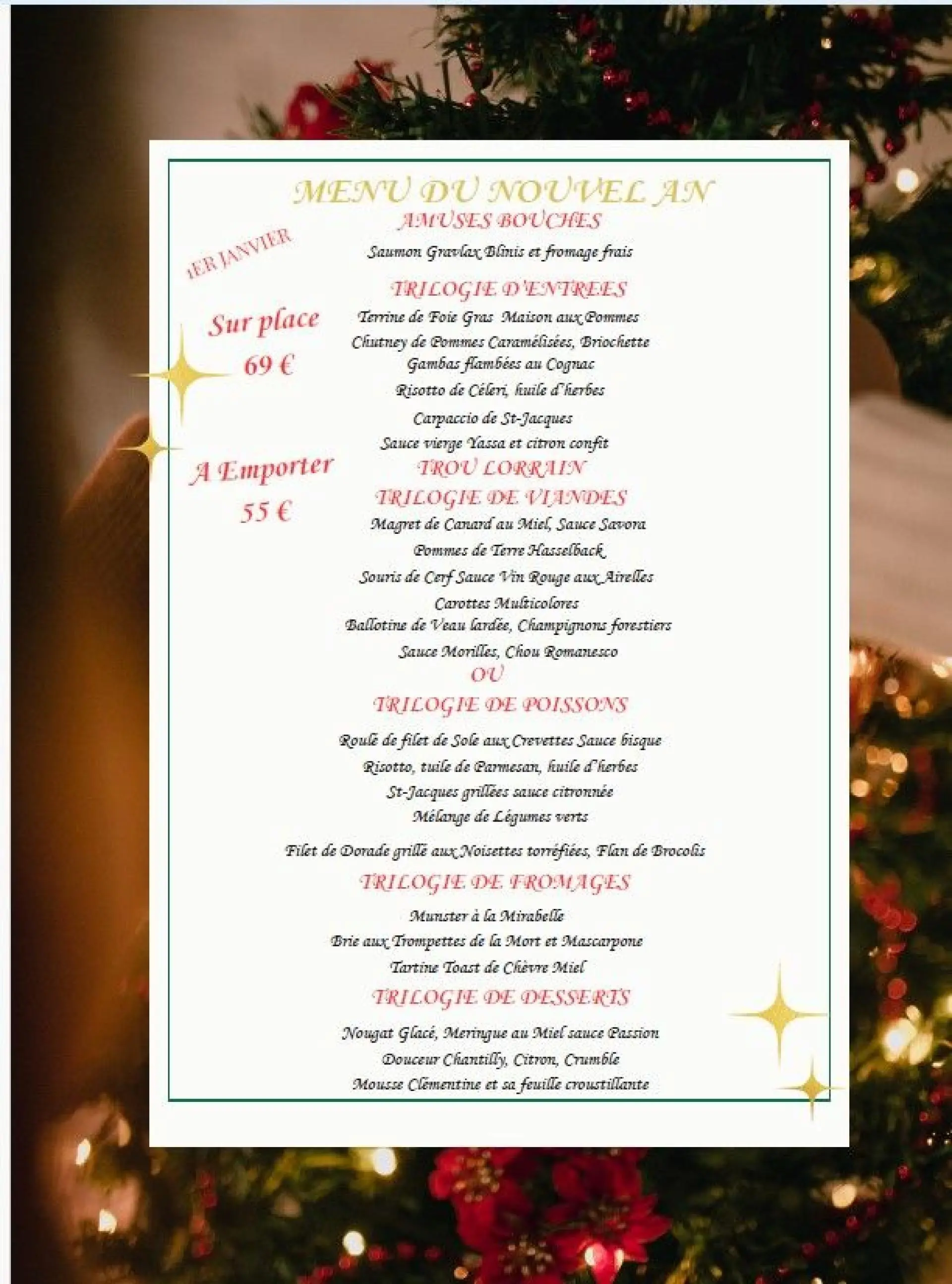 MENUS DE FETES NOEL NOUVEL AN