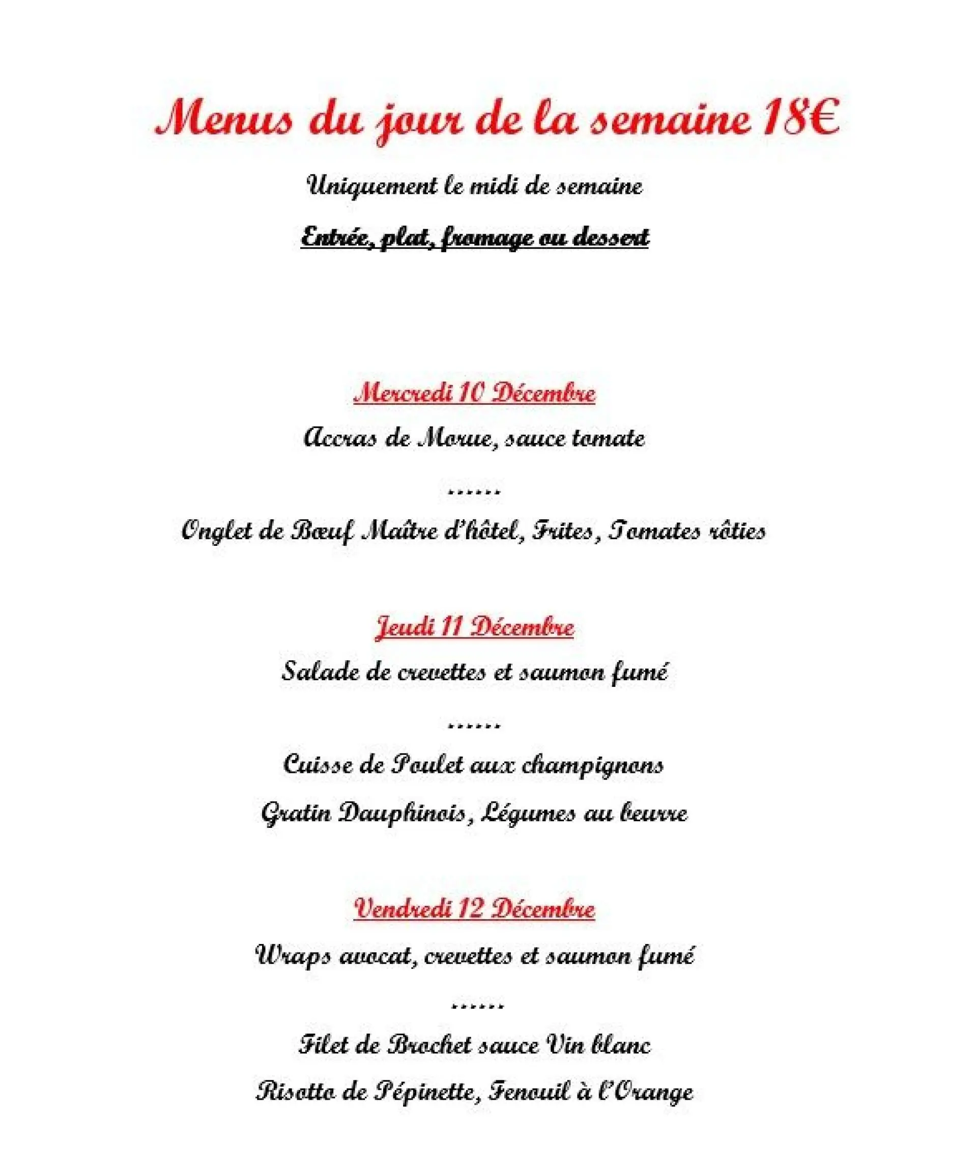 MENUS DU JOUR SEMAINE 50
